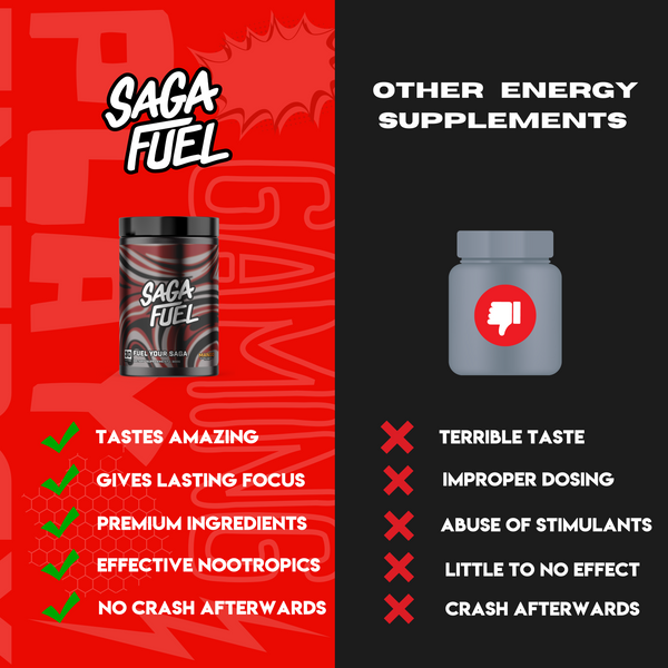 Sagafuel delivers a sustained energy boost without the crash, perfect for long gaming sessions.